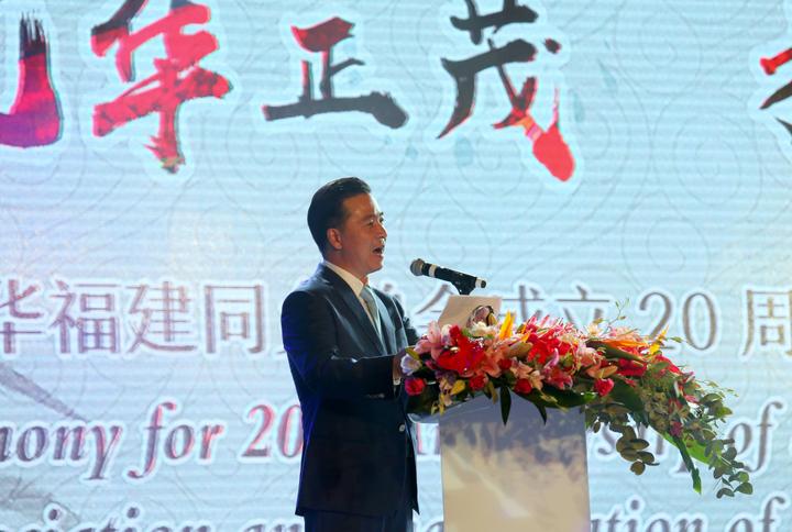10月1日,南部非洲中华福建同乡总会在约翰内斯堡举行成立二十周年庆祝晚会暨第十届会长理监事会就职典礼,杨天峙会长连人第十届会长并发表了热情洋溢的讲话。(孙想录摄影)