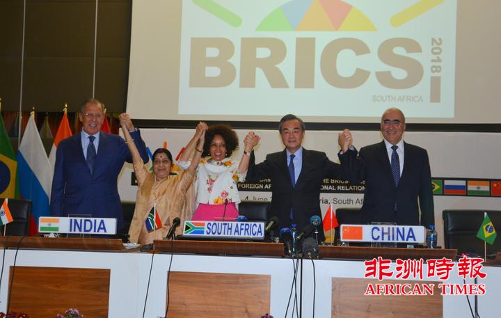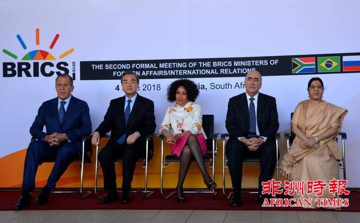 2018年6月4日,国务委员兼外交部长王毅在南非出席金砖国家外长正式会晤。会晤由南非外长西苏鲁主持,俄罗斯外长拉夫罗夫、印度外长斯瓦拉吉和巴西副外长加尔旺出席。