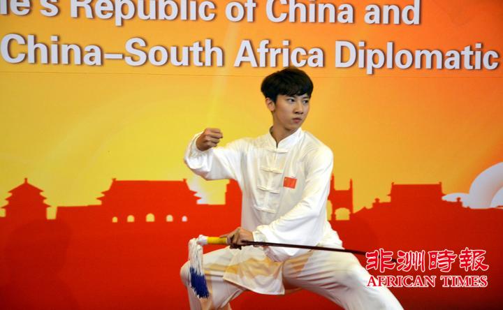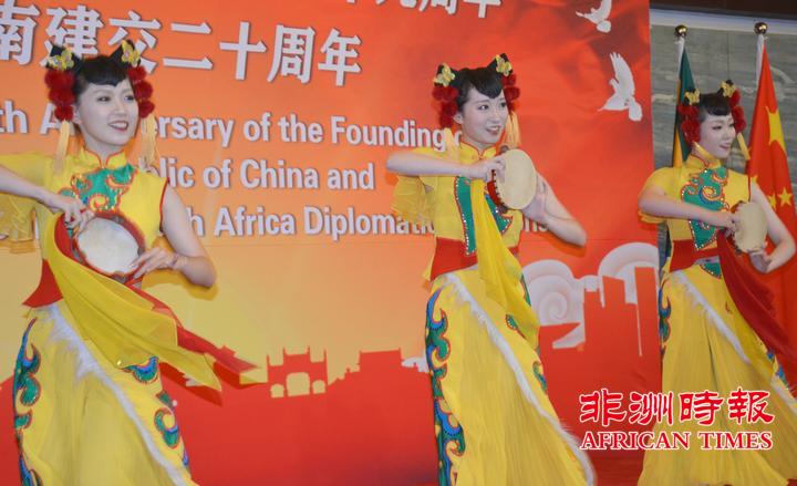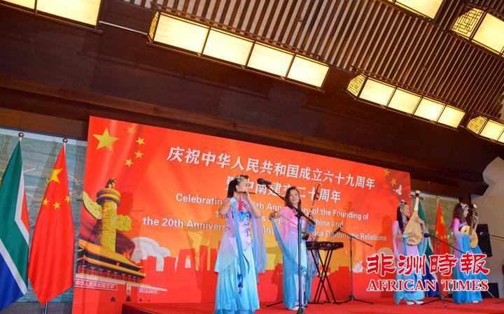 招待会上,驻南非使馆精心组织了中南建交20周年图片展和中南科技创新合作成果图片展,滚动播放《中非合作新时代》宣传片,邀请南非当地儿童用非洲传统乐器马林巴琴演奏起欢快的迎宾和席间乐,并邀请山东歌舞团为来宾献上了民族舞蹈、器乐合奏、杂技、武术等精彩节目,受到来宾们一致好评。使馆还向出席招待会的来宾发放了南非主流媒体当日出版的《中国国庆特刊》以及介绍中国文化和中非友好的外宣品。