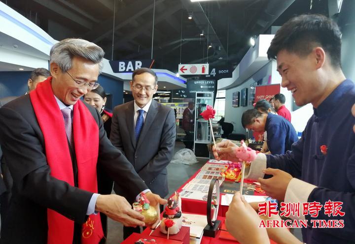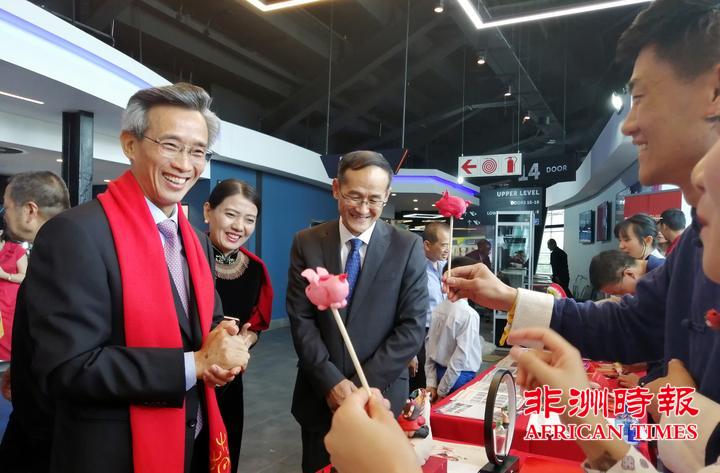 使馆“欢乐春节”庆祝活动从热情奔放的舞龙舞狮表演开始,林大使和哈内科姆部长共同为舞狮点睛,拉开了庆祝活动序幕。此前,驻南非使馆还在剧场回廊精心组织了中国改革开放40周年图片展和欢乐春节图片展,滚动播放精彩宣传片,并邀请河南省艺术家们为来宾们表演了剪纸、面塑、糖人、灯笼、风筝制作等中国民间传统技艺,展示了中国丰富的非物质文化遗产,受到中外来宾们老少一致欢迎和好评。
