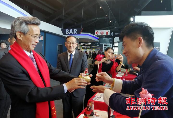 中国驻南非大使林松添,南非政府代表、旅游部长哈内科姆出席并致辞。南非总统府总司长鲁比西、国家典礼局长露茜大使,外交部、旅游部、内政部、科技部、国防部等政府、政党及军队高官要员,工商、学术、新闻媒体、智库学者等各界名流,以及部分国家驻南使节、中资机构企业、华侨华人、港澳台胞等近千人应邀出席。