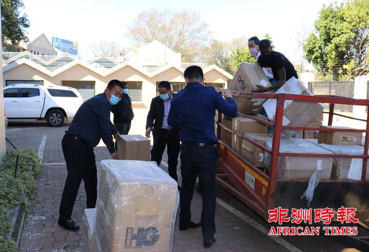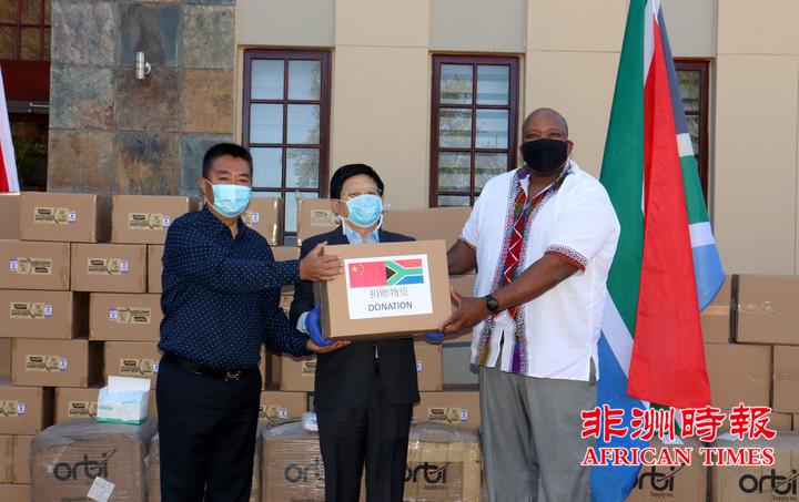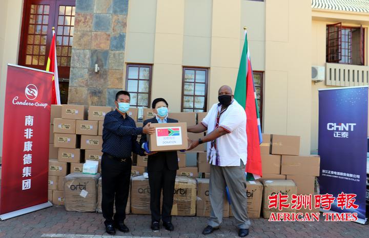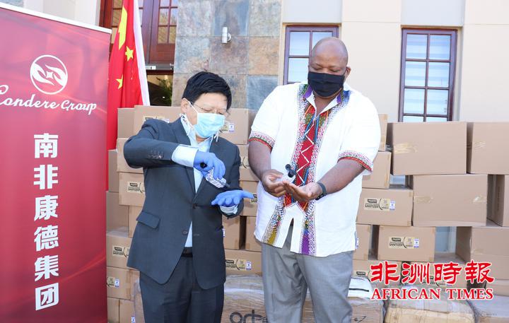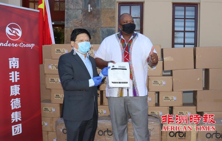 5月12日,南非康德集团向自由州省政府捐赠了一批抗疫物资,中国驻约堡总领事唐中东、南非康德集团董事长孙平原、自由州省卫生厅副厅长马库斯等出席。