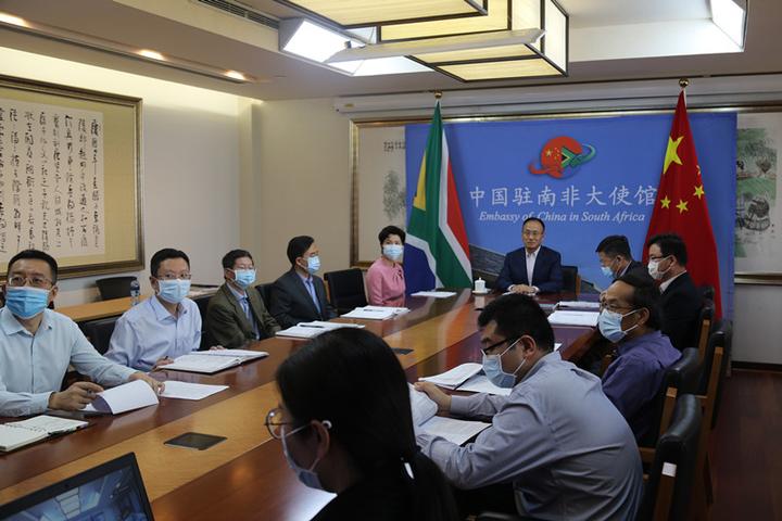 陈大使表示,建交22年来中南关系实现跨越式发展。面对疫情,两国元首共商中南、中非抗疫合作大计,共谋中南、中非关系未来发展。当前南非疫情形势呈现好转态势,并有序推进复工复产,拉马福萨总统近日宣布了国家经济复苏计划。但南疫情总体仍在高位运行,经济、治安形势均受到疫情严重冲击。下阶段,我们将继续全力支持南非抗击疫情,同时规划好疫后中南各领域合作对接。希望中资企业机构和旅南侨胞抓住机遇,搭乘中南合作快车,实现共同发展。