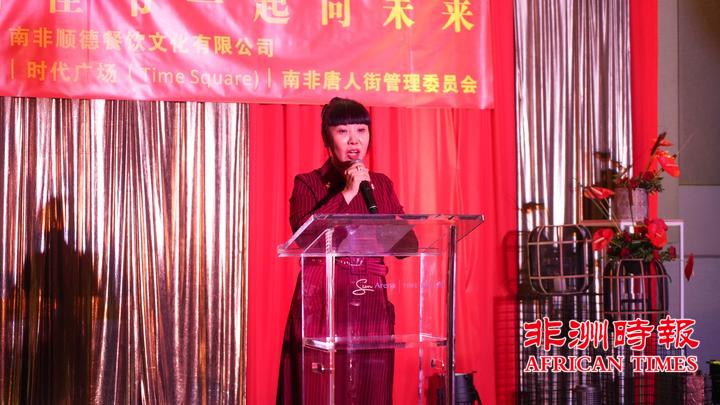 张薇女士代表南非顺德餐饮文化有限公司感谢侨胞们一直以来对该公司的支持和关注,她表示,大家欢聚一堂共庆新春佳节,这场活动特别的有意义,她也有信心、有能力继续为大家提供美味可口的中餐服务。