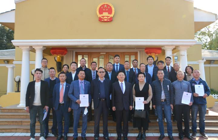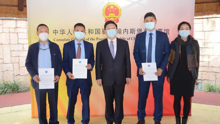 唐中东总领事还为领区内的志愿者颁发了委任书,总领馆为每位志愿者发放了便利开展工作的“工具包”。唐表示,总领馆永远是领区侨胞在南非安居乐业的坚强后盾,将一如既往为志愿者履职尽责提供支持。