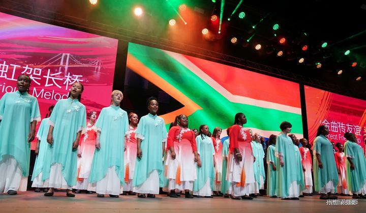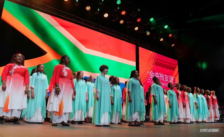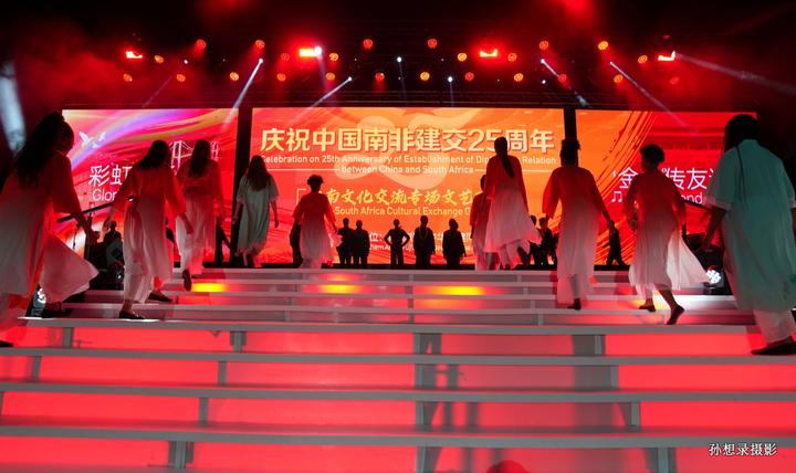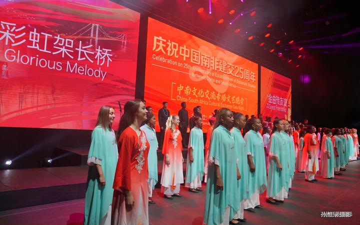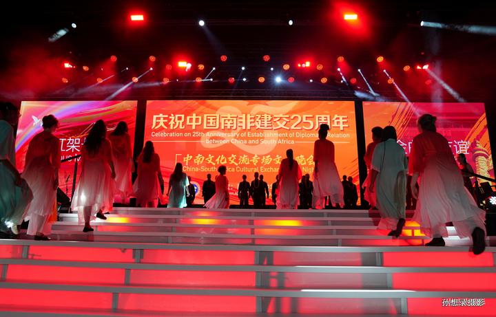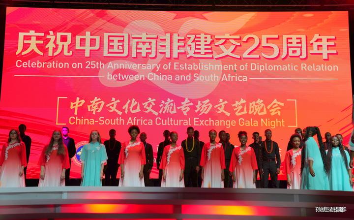 周年,中南文化交流专场文艺晚会在行政首都比勒陀利亚时代广场阳光演艺大厅隆重举办,本次活动由南部非洲中华福建同乡总会主办,比勒陀利亚大学艺术学院的学生和全场2000余名华侨华人一同凑唱国歌。