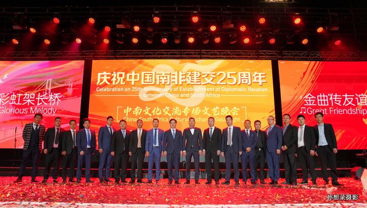 10月7日,庆祝中南建交25周年,中南文化交流专场文艺晚会在行政首都比勒陀利亚时代广场阳光演艺大厅隆重举办,本次活动由南部非洲中华福建同乡总会主办,晚会在歌唱祖国声中落下帷幕。