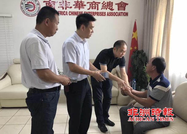 南非华商总会会长郑星利介绍,近年来,由于南非的治安形势每况愈下,每年都有侨胞因遭遇抢劫而不幸遇害,每当听到这类消息后,大家都感到十分难过。“这次我在得知这名遇害的福建籍侨胞家境比较困难,于是南非华商总会和南部非洲中华福建同乡会第一时间向他的家属举行了捐赠”。郑会长说,今年以来,我们也先后向当地贫困社区,当地华人安老院及遇到困难的华人家庭等举行了数次慈善捐资,希望我们的善举能够实实在在帮助那些需要帮助的人。