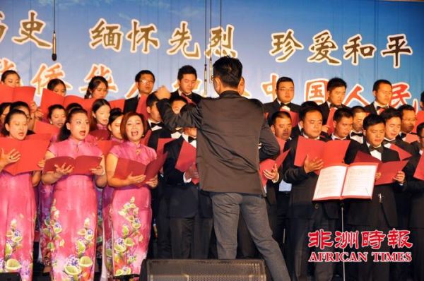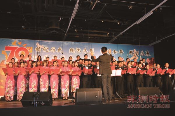 纪念活动开始前,驻约堡总领馆和南部非洲中华福建同乡总会举办了纪念中国人民抗日战争暨世界反法西斯战争胜利70周年图片展。纪念活动上,华侨华人代表通过大合唱、独唱、京剧、朗诵、乐器演奏等艺术形式,抒发海外游子对祖国的无限深情,表达中华儿女对未来的美好愿景。最后,全场合唱《歌唱祖国》,将整个纪念活动推向高潮。