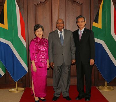 8月24日,中华人民共和国驻南非共和国特命全权大使林松添在南非总统宾馆向南非总统雅各布·祖马递交国书。双方就中南关系和促进双边友好合作等进行了亲切交谈。