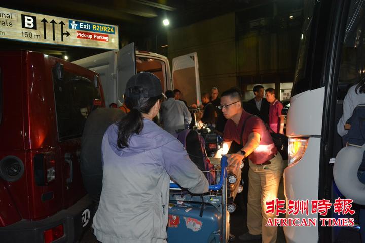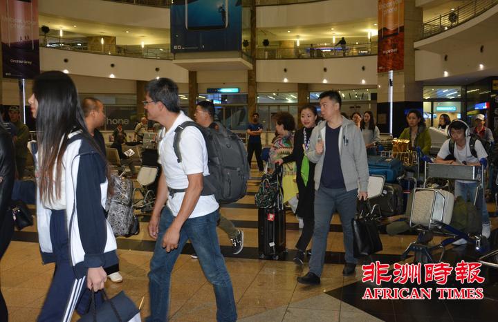 由国务院侨务办公室宣传司许玉明司长率领的赴南“文化中国慰侨艺术团”,于9月28日晚9时许抵达约翰内斯堡国际机场,中国驻约翰内斯堡总领馆屈伯勋副总领事、买欣全主任、矫磊领事,南部非洲中华福建同乡总会杨天峙会长、南非华商总会郑星利会长和同乡总会主要干部成员到机场迎接。