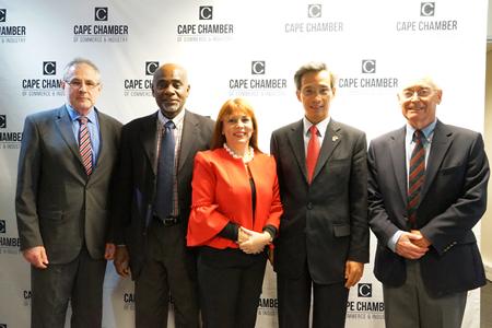 7月9日,中国驻南非大使林松添应南非国际问题研究所西开普分所和开普敦工商会联合邀请,赴开普敦工商会发表题为《金砖团结合作是大势所趋 中南共同发展前景广阔》的主旨演讲。开普敦工商会主席米博、开普敦工商会执行主任帕莫尔、南非国际问题研究所副主席特诺尔、南非工商界和智库代表、开普敦大学师生以及多家中南媒体代表等百余人出席。