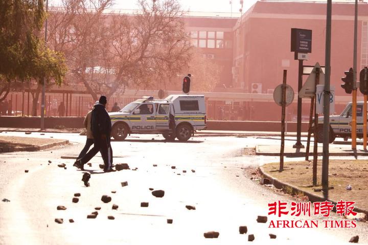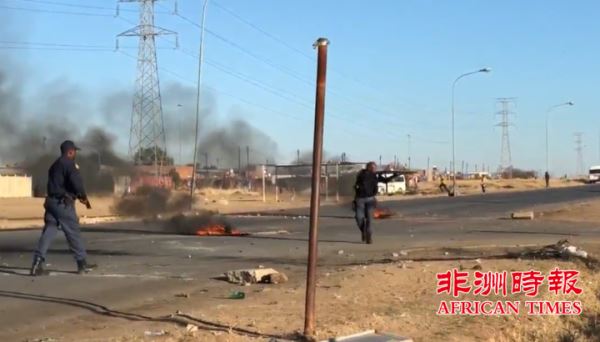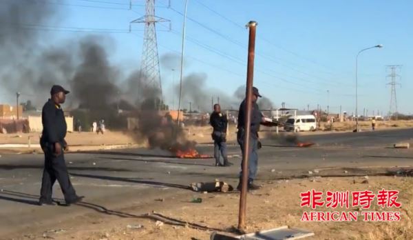 目前,警方正在严阵以待的关注情势中。据北开普省警民中心主任陆明晖介绍,这是近年来发生在金伯利的规模最大的一次骚乱,路上全部是被焚烧的轮胎和投掷的石块,已经无法通行。