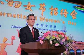 2019年3月6日,中国驻南非使馆与南非执政党非国大妇联共同举行2019年国际妇女节庆祝活动。使馆多功能厅装饰一新,洋溢着喜庆的气氛。近三百名非国大妇联代表、使馆女外交官及外交官配偶等欢聚一堂,中国驻南非大使林松添、非国大妇联秘书长马图巴出席并讲话。