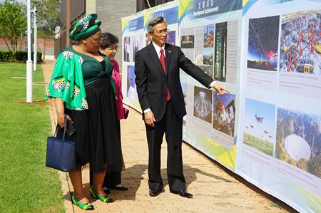 招待会在纪录片《鸟瞰中国》中拉开帷幕。来宾们还参观了中国改革开放40周年图片展,并共同观看《中国改革开放的故事》、《蒙内铁路》、《美丽中国》、《新疆是个好地方》等纪录片。活动期间,非国大妇联代表们载歌载舞,数度将现场气氛推向高潮。