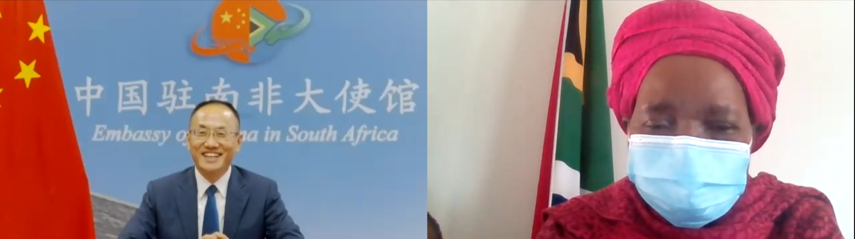 2月1日,陈晓东大使视频拜会南非联合执政和传统事务部长德拉米尼-祖马。