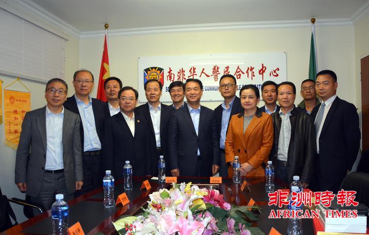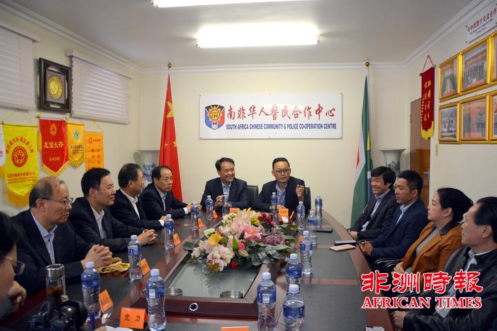 李新铸主任代表南非华人警民合作中心向杜航伟书记一行访问南非表示热烈的欢迎,他向访问团一行简要介绍了南非的安全形势、警民中心的成立背景和日常工作情况。他表示,为了更好的为遇到各类困难的侨胞提供帮助,近几年来,南非各地相继成立了省市级华人警民合作中心,面对南非日益严峻的安全形势,警民中心将继续团结在南华人华侨们,协助南非警方打击犯罪,为构建平安侨社而努力。