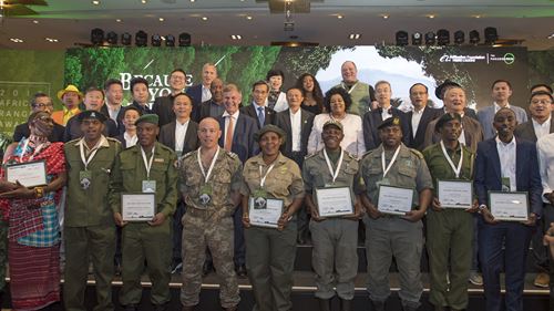 林大使表示,我们很欣慰地看到越来越多像马云先生这样的中国人在实现自身发展的同时,积极投身于野生动物保护这一人类崇高的事业。我今天专程来出席这场非洲野保巡护员颁奖仪式,就是要代表中国政府对马云先生和桃花源基金会的善举和率先行动点赞和支持,对获奖的南非巡护员以及大量没有获奖的非洲巡护员表达最崇高的敬意和坚定支持。