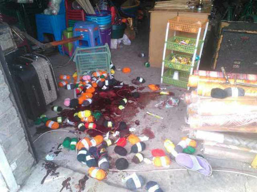 图说:受害者店内地面的大片血迹