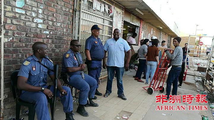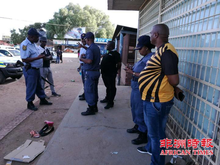 今天,在防暴警察的掩护下,北开普省华人警民合作中心主任陆明晖和当地CPF副主任前往该骚乱区协助搬离华商店铺物资,由于物资众多预计凌晨才能运完。