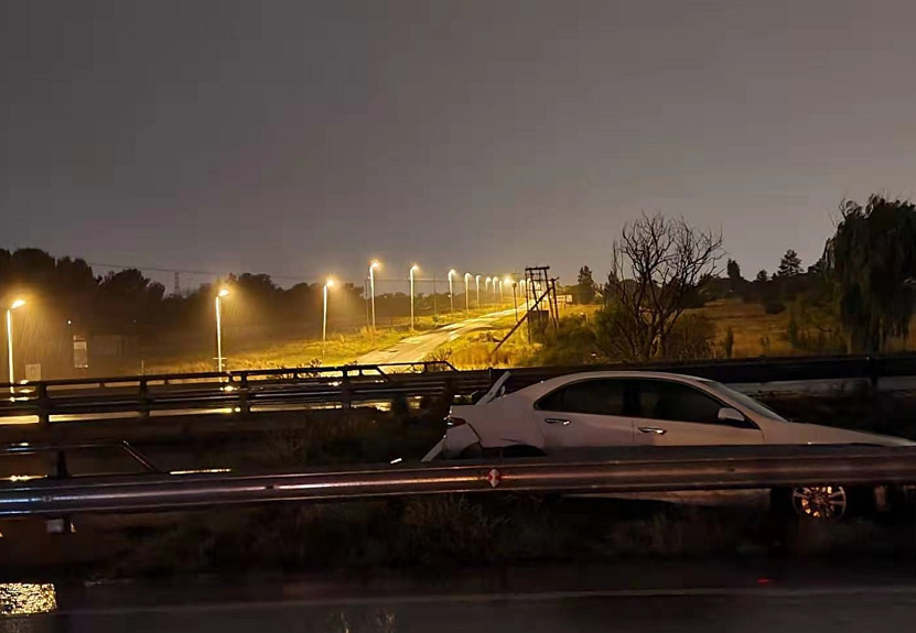 接电后石钦平会长,黄勇华副会长,林福副会长,张燕磊秘书长冒着大雨第一时间紧急赶到现场并联系交通警察和拖车公司,车祸现场离高架桥半米不到的距离,万幸没有造成人员伤亡。
