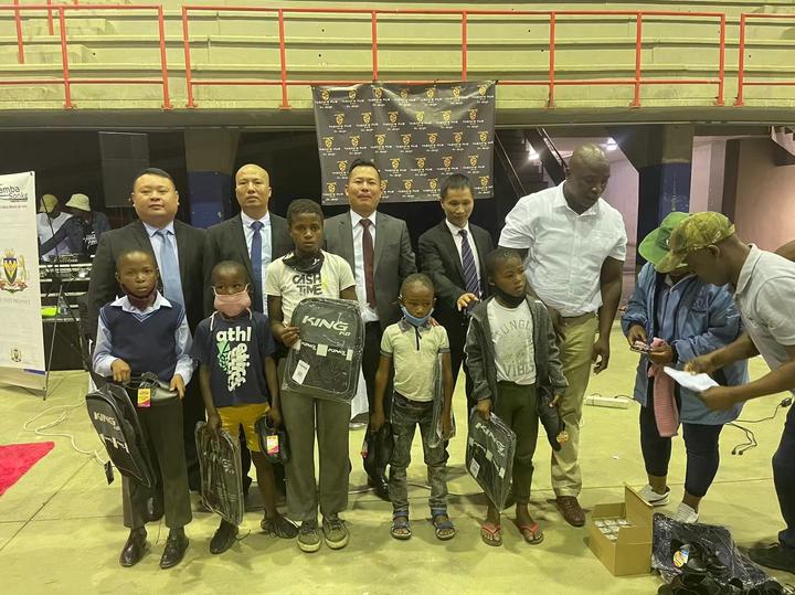 自由州福建同乡会石钦平会长、张燕磊秘书长,黄勇华副会长、谢师进副会长和自由州省政府各部门和博察贝洛警察局局长一同出席了当天的捐赠仪式,并现场捐赠了180个书包和200份食物。