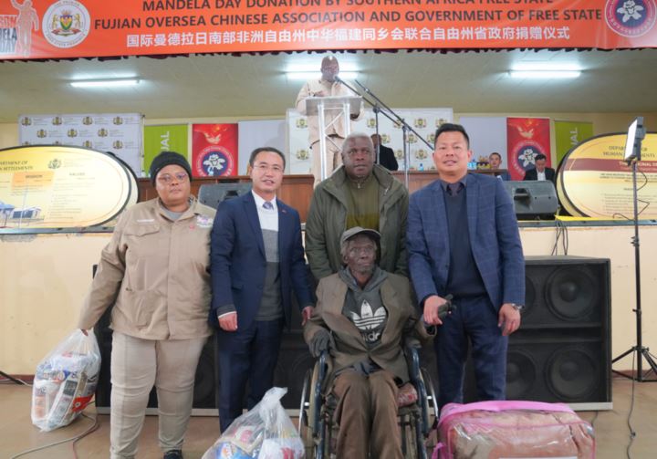奉献之美在同乡会干部的努力中绽放,行善之心照亮贫困社区的每一个角落。捐赠仪式在庄严的中南两国国歌声中拉开大幕,当天,自由州省福建同乡会给500户居民准备生活大礼包,包括毛毯、食用油、玉米粉、糖等生活物资,在每一份食品包上都醒目的印着同乡会的中英文名称,捐赠当天还为在场的五百多人都准备了一顿午餐。众所周知,7月18日是纳尔逊·曼德拉国际日,自由州省福建同乡会正是响应“曼德拉精神”,精心筹划了此次大规模的慈善捐赠。