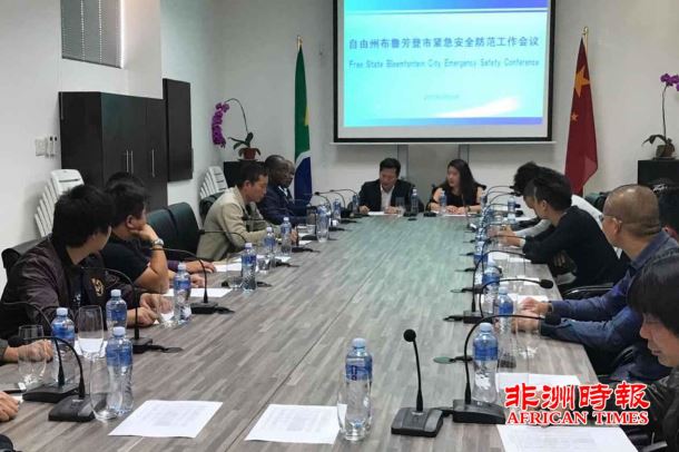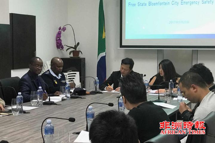 连日来,自由州省布隆方丹市中心发生骚乱,一名当地华人在骚乱中受伤,另外一家华人店铺也遭到哄抢,5月23日,南部非洲中华福建同乡会自由州省福建同乡会召开紧急安全工作会议,布隆方丹市警察局负责人、骚乱区域的华人商家代表和同乡会干部成员一同出席了此次会议。