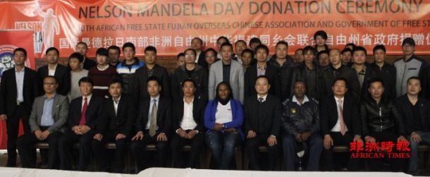 7月18日是国际曼德拉日,南部非洲中华福建同乡总会、自由州福建同乡会联合自由州省政府向萨索尔堡(Sasolburg)地区的250多户贫困家庭捐赠了一批慈善物资,总价值超过35万兰特,其中中国驻约翰内斯堡总领馆也为此次活动捐助了2万兰特,南部非洲中华福建同乡总会捐赠了8万兰特。