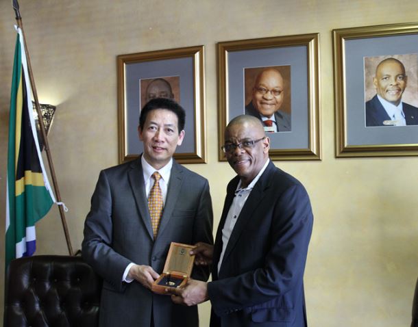 4月19日,阮平总领事在布隆方丹拜会自由州省省长马哈舒勒(Ace Magashule),任晓霞副总领事陪同会见。