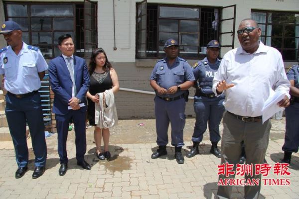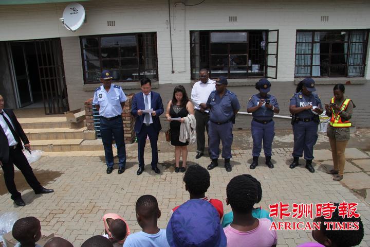 自由州Mangaung警察局副局长Lefefa、Batho警察局副局长Rankali ,副局长Molahloe,自由州福建同乡会石钦平会长、庄将荣监事长、黄勇华副会长、陈启良副会长、谢师进副会长、林福副会长、Santie 秘书等出席了圣诞礼品的捐赠发放仪式。此次捐赠是由自由州福建同乡会和自由州Mangaung警察总局联合发起和组织的。
