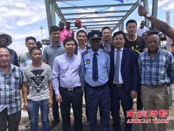 大会诚挚邀请当地华人团体积极参与,自由州省福建同乡会做为该地区最大的华人组织受到总监热情的接待,在圣诞新年双节期间,当地警察承诺加大警力努力保障治安问题,警民携手共同打造一个良好的安全环境,为当地经商生活环境提供一个良好的平台,国家警察总监对当地华人在安全治安方面的努力给予了充分的肯定与鼓励,会后国家警察总监SITOLE与参会中方人员一一握手并合影留念。