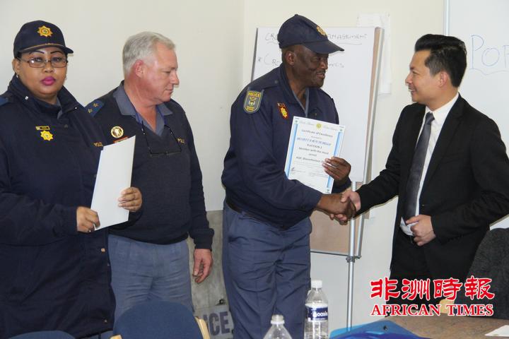 6月28日,受南非自由州警察厅防暴警察总局的邀请,自由州省福建同乡会受邀参加三位退休警长的退休仪式,华人代表石钦平先生与黄勇华先生做为警方的活动嘉宾,对过往这些年当地的防爆警察做出了积极的评价。