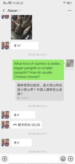 当地人通过微信向她推销穿山甲。