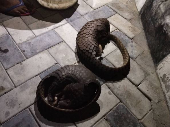 当地市场上卖的穿山甲。