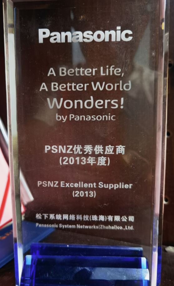 ▲松下授予裕威的“优秀供应商”奖牌