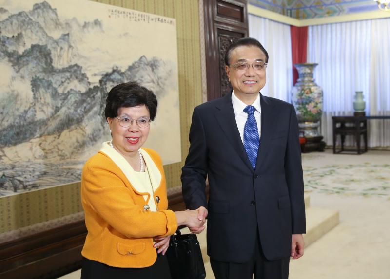 国务院总理李克强7月27日下午在中南海紫光阁会见世界卫生组织前任总干事陈冯富珍。
