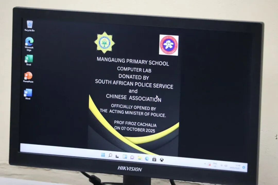 石会长还在讲话中感谢自由州省政府与警察部门的鼎力支持,称其在治安维护、社区建设中的协作,为华人社区生活,发展和践行公益创造良好环境;同时感谢学校师生的信任,强调计算机教室凝聚同乡会全体成员心意与对南非下一代的期许。他寄语同学们珍惜馈赠,在数字世界探索新知、锤炼技能,未来建设家园、助力南非繁荣。