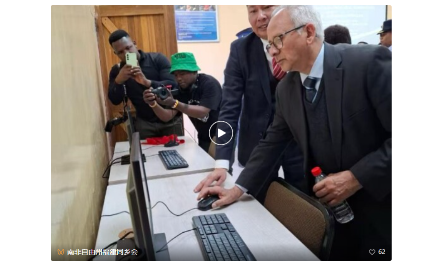 10 月7日,南非自由州省布鲁芳丹市曼加翁(Mangaung)小学洋溢着热烈的氛围,由自由州福建同乡会捐建的计算机教室启用剪彩仪式隆重举行。南非代理警察部长菲罗兹・卡查利亚、自由州省省长马奎恩・马泰、南非国家警察总监马塞莫拉等出席,并共同见证这一承载中南友谊的公益时刻。