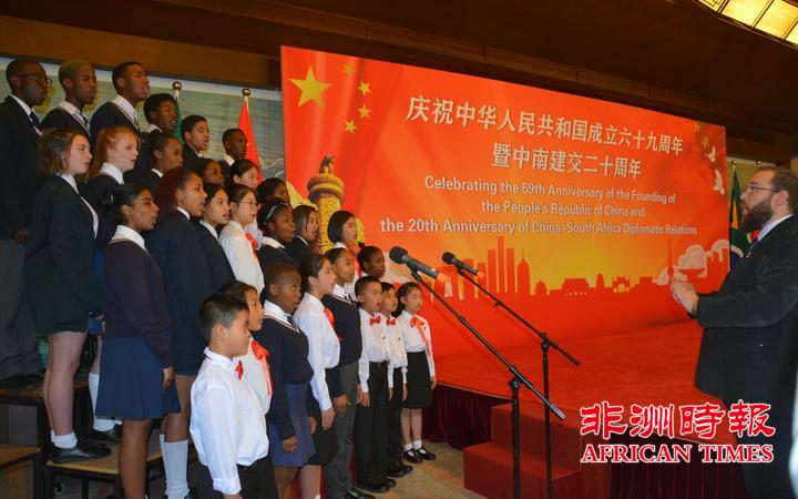 祖鲁在致辞中代表南非政府和人民热烈祝贺中华人民共和国成立69周年。祖鲁赞同林大使对南中、非中关系的积极评价,盛赞中非合作论坛北京盛会和中国对非政策,认为中国使馆组织两国青少年合唱两国国歌充分显示两国友谊已深入人心、后继有人。祖鲁说,今年恰逢南中建交20周年和曼德拉诞辰100周年,年内两国元首成功互访,引领南中政治互信、经贸合作、人文交流实现了新发展。南非是中国在非洲最重要的贸易伙伴,两国在中非合作论坛、金砖和“一带一路”框架下密切协作,合作成果丰硕。南方赞赏中方支持非盟《2063年议程》和南非经济社会转型的努力,感谢中国企业对南发展所做积极贡献,期待更多中国人和企业来南旅游和投资兴业。