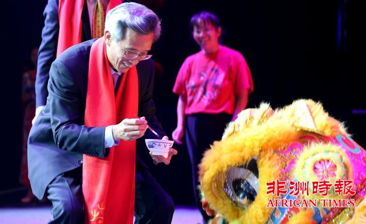 林大使和哈内科姆部长共同为舞狮点睛