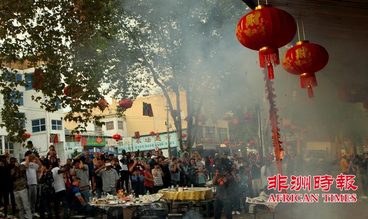 今天的约堡唐人街张灯结彩、锣鼓喧天、龙腾狮舞、鞭炮齐鸣、烟花漫天,到处都洋溢着中国农历新年的欢乐气氛。随着夜幕的降临,这条600多米长的街道已经被布置的格外耀眼。与往年相比,最大的亮点是唐人街管委会在主街道的一侧搭建了表演舞台,邀请了300多名嘉宾观看演出、品尝美食。