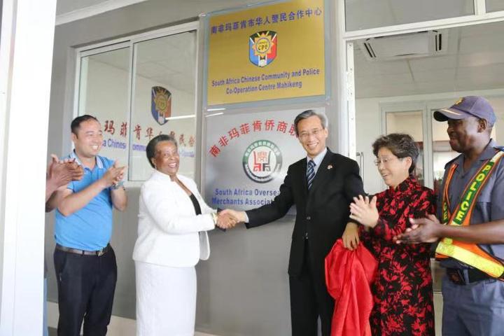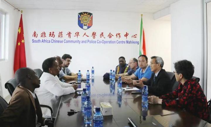玛菲肯市位于南非西北省与博茨瓦纳交界处,近年来多次发生群体骚乱和打砸抢事件。玛菲肯市华人警民合作中心成立于2018年3月,是南非成立的第13家华人警民合作中心,服务该市及周边地区近800名侨胞和200余家各类侨商企业,已连续两年被西北省授予全省警民最佳合作奖。