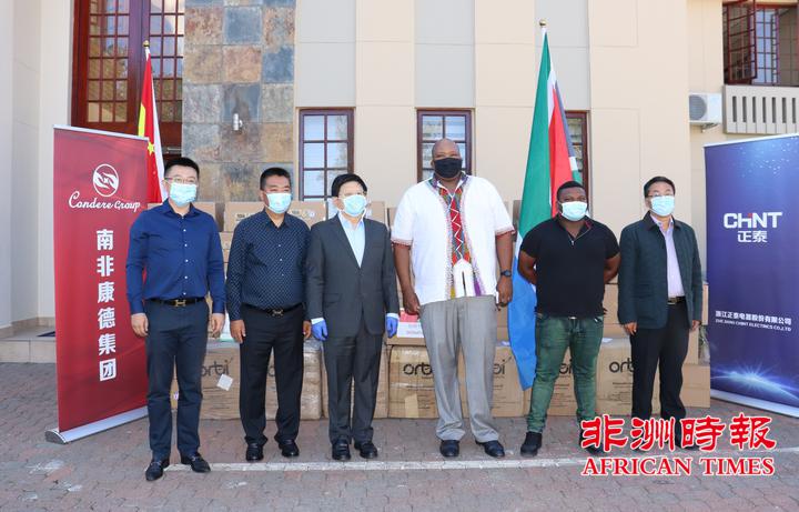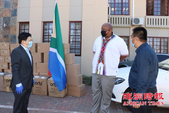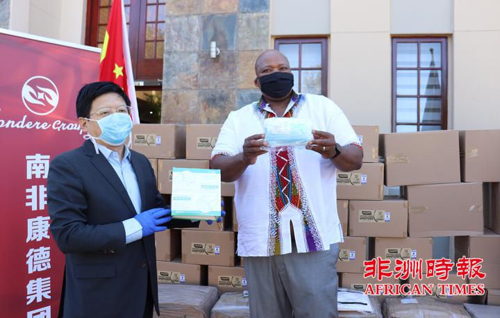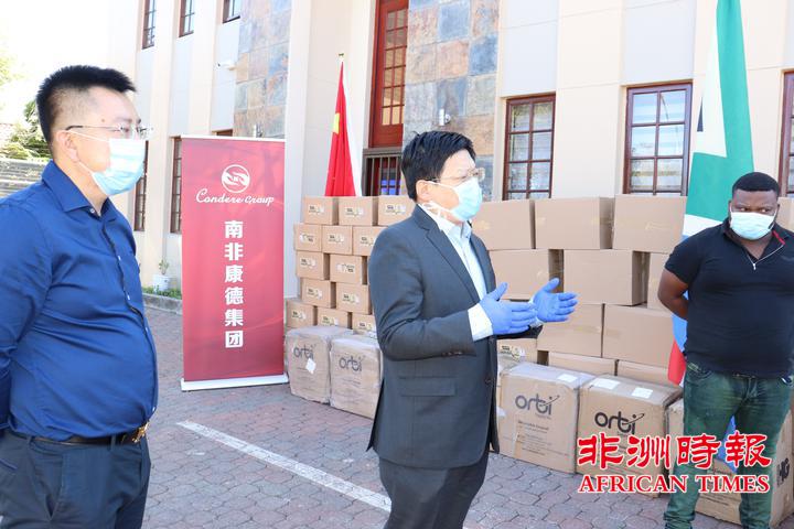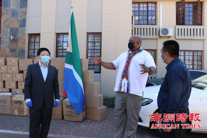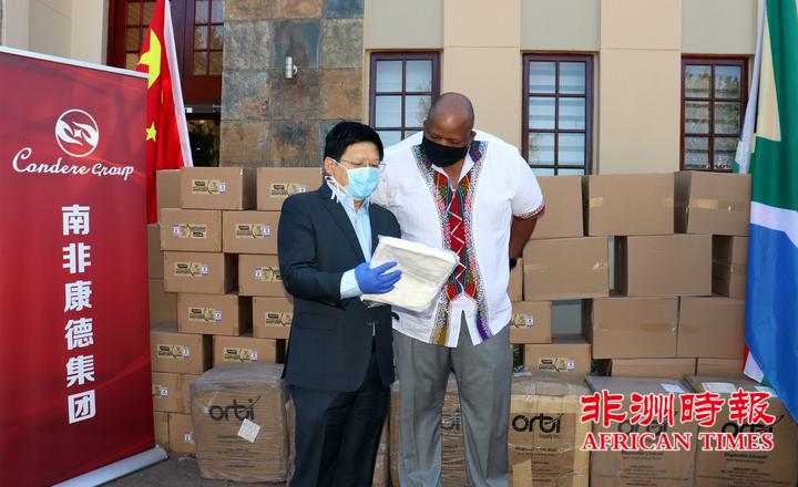5月12日,南非康德集团向自由州省政府捐赠了一批抗疫物资,中国驻约堡总领事唐中东、南非康德集团董事长孙平原、自由州省卫生厅副厅长马库斯等出席。