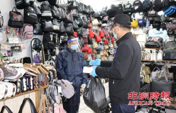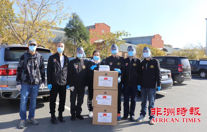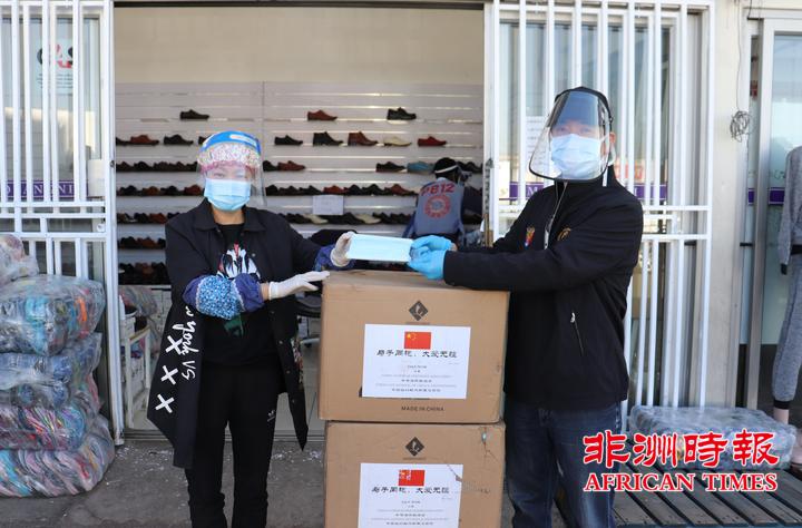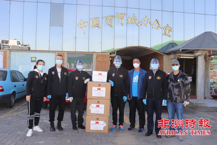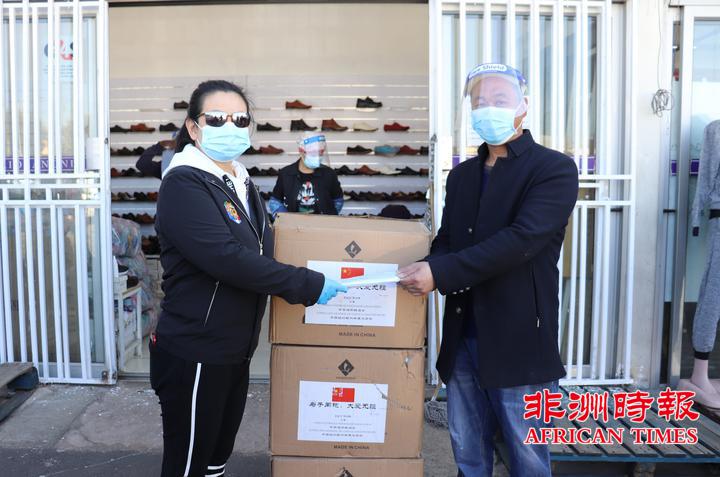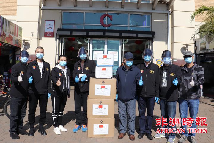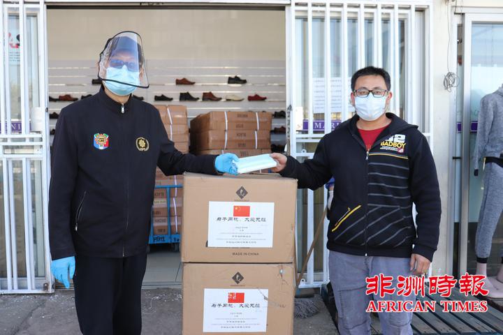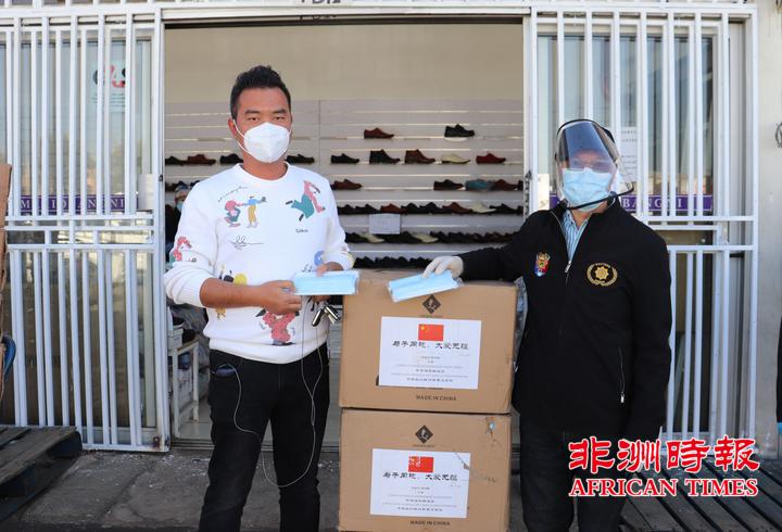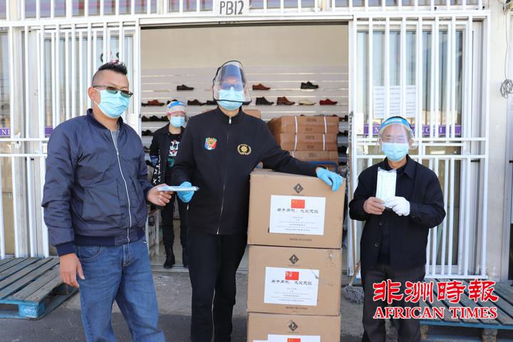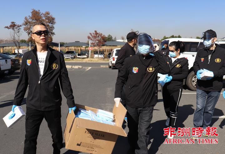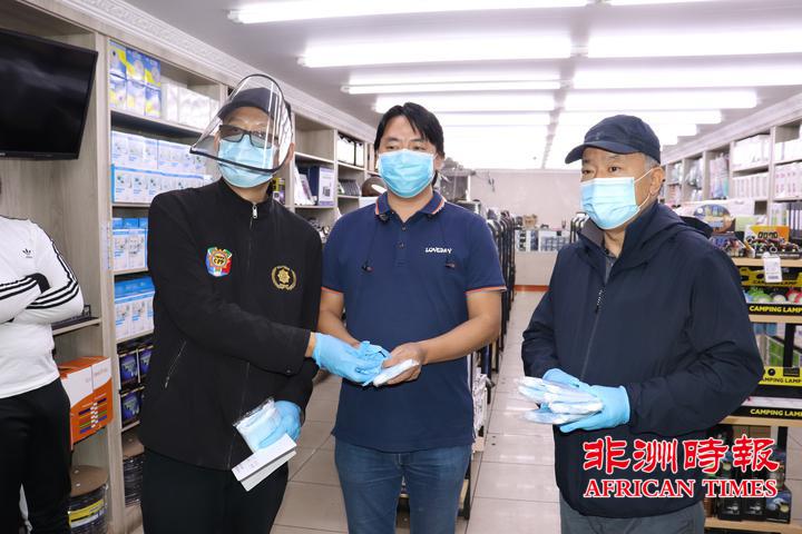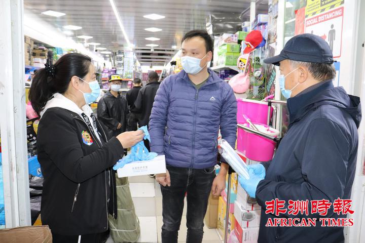 当天,南非华人警民合作中心主任李新铸,常务副主任朱怡苑、郑星利、副主任委员杨斯淞、张钊、黄宝烈,执行长谢宇航等前往中国商贸城、中非商城、香港城、百家商城和非洲商贸城,将这批手套和口罩分发给华人商家。
