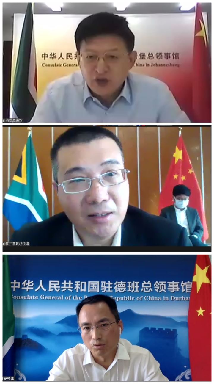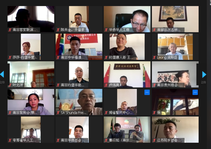 南非-中国经贸协会会长汪文安及等5家在南中资企业机构,及南非华人警民中心主任李新铸等9家旅南侨社代表,驻德班总领事费明星、驻开普敦总领事林静、驻约堡总领事唐中东,驻南使馆主要外交官,中资企业机构、旅南主要侨社代表等400余人线上参会。