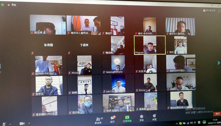 南非华人警民合作中心当天召开的全体理监事视频会议共有60多人参加,会议持续了一个半小时,常务副主任朱怡苑主持当天的会议。