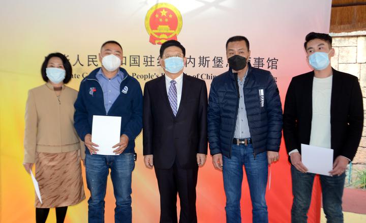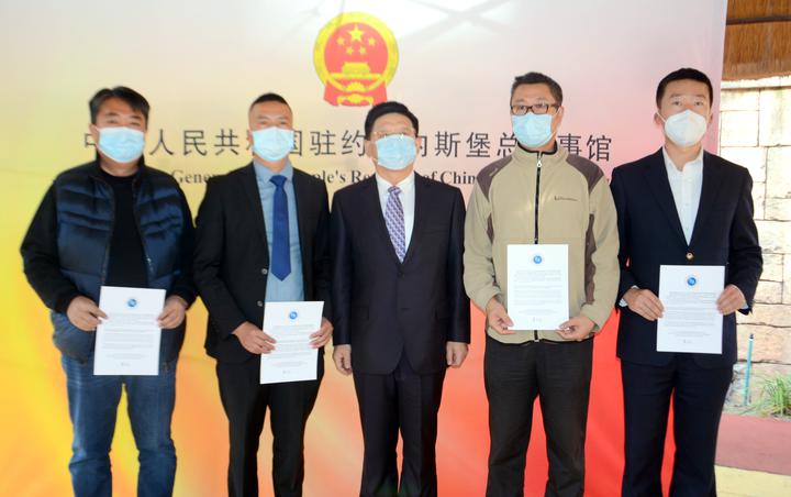 唐中东总领事还为领区内的志愿者颁发了委任书,总领馆为每位志愿者发放了便利开展工作的“工具包”。唐表示,总领馆永远是领区侨胞在南非安居乐业的坚强后盾,将一如既往为志愿者履职尽责提供支持。