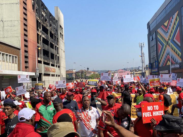 8月24日,南非总工会科萨图(Cosatu)和南非工会联合会(Saftu)领导数千名工人和活动人士在全国范围内举行罢工,反对高失业率、电费上涨以及燃料和运输成本的急剧上涨。