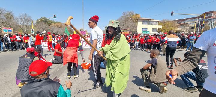 中午,随着越来越多Cosatu和Saftu的成员在比勒陀利亚市中心相遇,他们唱着奋斗歌曲载歌载舞。